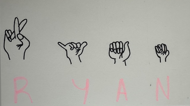 I also learned how to sign my name and say āmy name is Ryan. What is your name?ā. I also created a name tag that has my name in signs on the top and my name written out below. This was super cool to learn, and I personally think it is the most important thing to learn first because I can now at least introduce myself to someone using ASL and have a small conversation with people who use ASL.